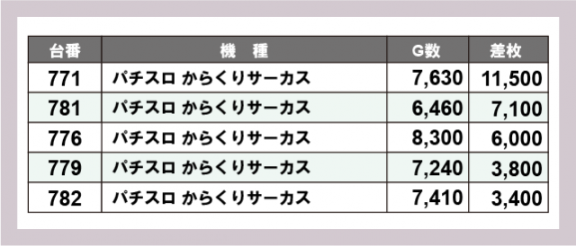 ※差枚数順に掲載しています