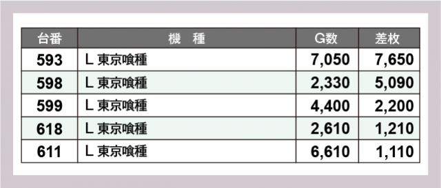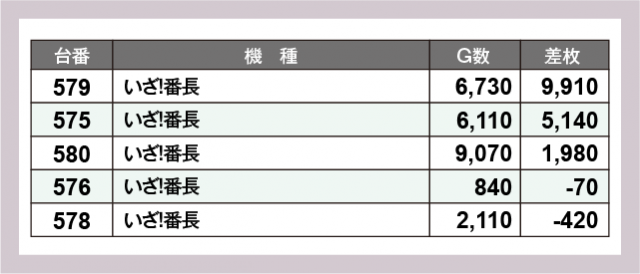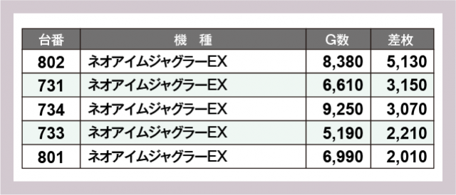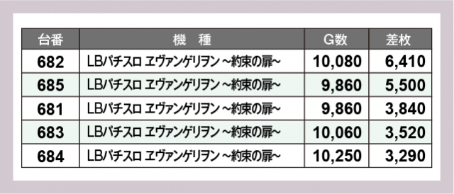 ※差枚数順に掲載しています