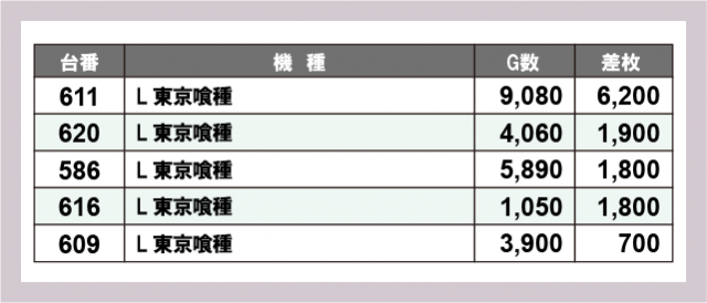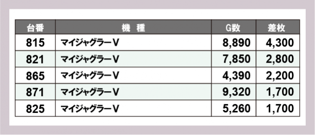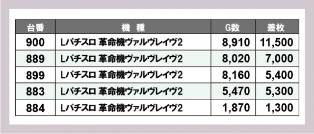 ※差枚数順に掲載しています