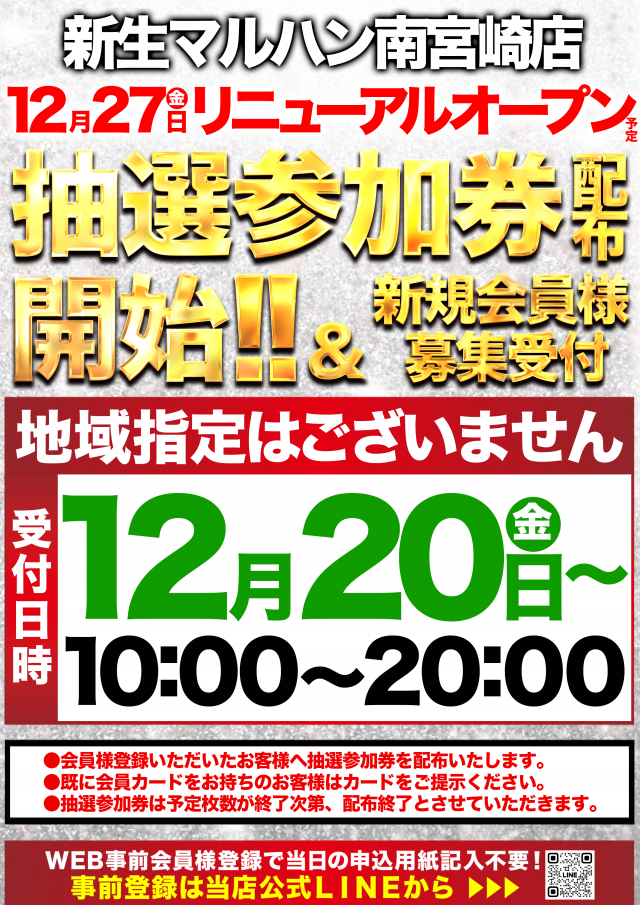 ☆抽選参加券配布中☆12月27日(金)リニューアルオープン!