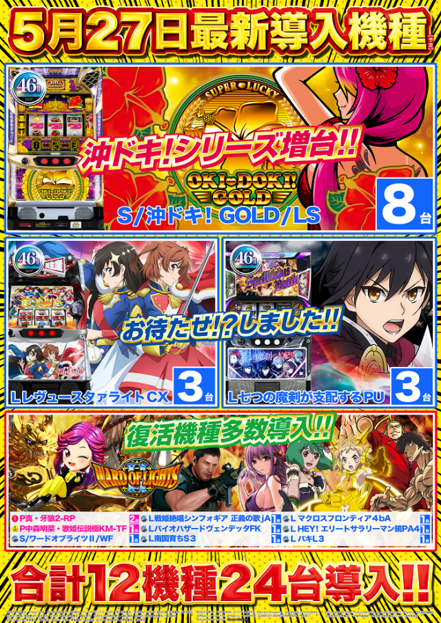 5月27日【火】★新台入替★店長ブログ更新済❗