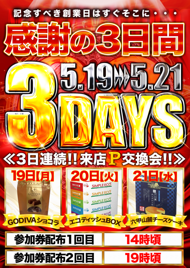 ~感謝~★★5月22日はマルハン創業の日★★朝10時開店!