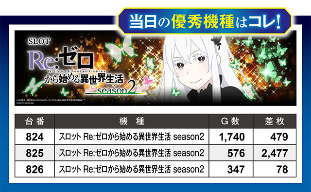 3台設置ながらも強烈なインパクトを残したのは『Lルパン三世 大航海者の秘宝』。796番台の勢いが凄まじく、7,000枚オーバーを達成するに至った。またお隣の795番台も悪くなく、こちらも2,000枚突破!