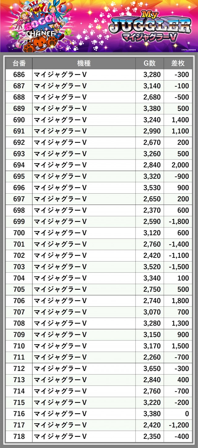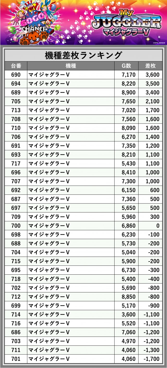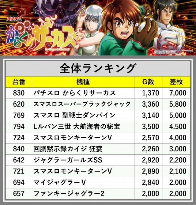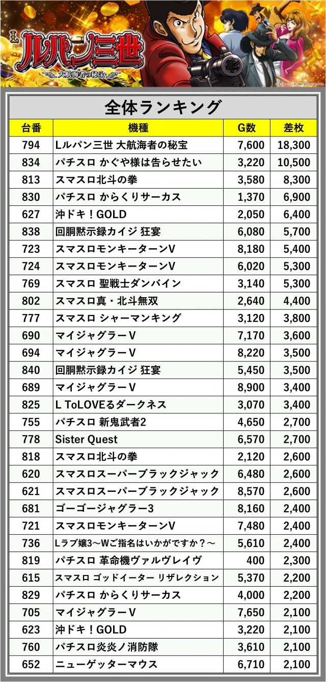 ※差枚数順に掲載しています