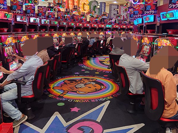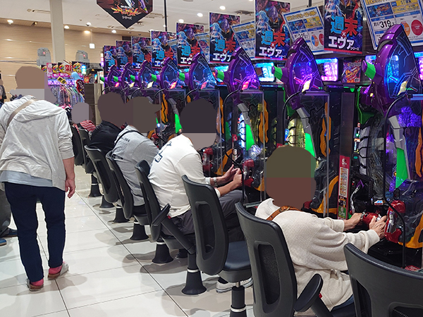 取材時は既に多くのプレイヤーであふれており、パチンコ・パチスロを問わず楽しげな表情でいっぱいだった。