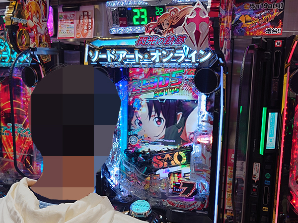 15時ごろの500円/115玉パチンコでは「新世紀エヴァンゲリオン〜未来への咆哮〜」や「e ソードアート・オンライン 閃光の軌跡」が人気で、プレイヤーの嬉しそうな様子を多数確認している。