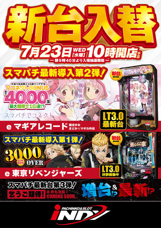 本日7月23日(水) 新台入替初日朝10時OPEN!