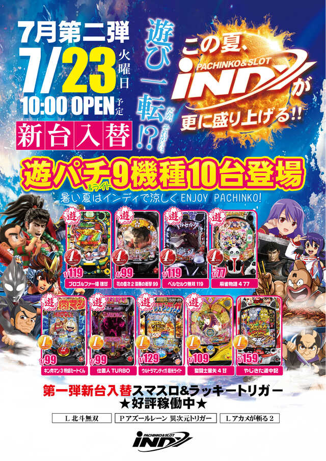 明日7/23(火)新台入替、朝10時OPEN☆