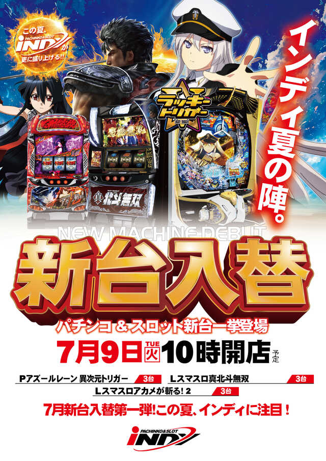 明日7/9(火)新台入替、朝10時OPEN☆