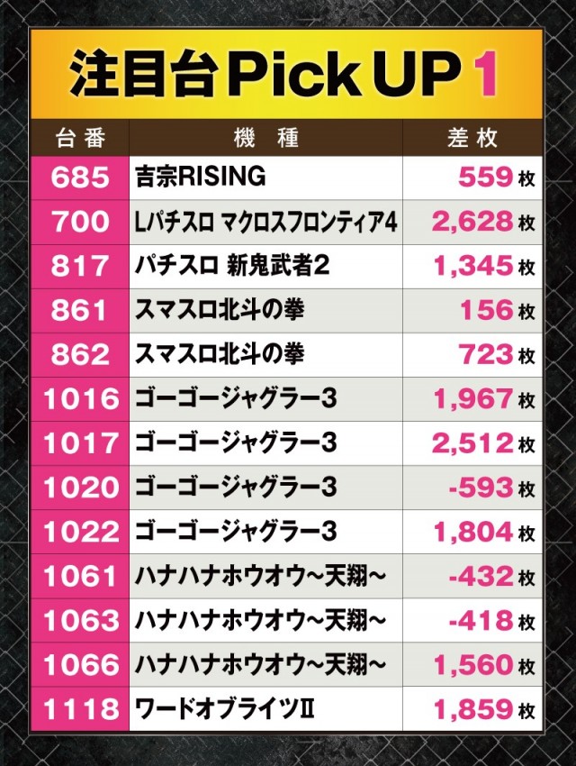 そのほかにも1,000枚超えの好調台が多く、来店したファンたちを心から楽しませていた。