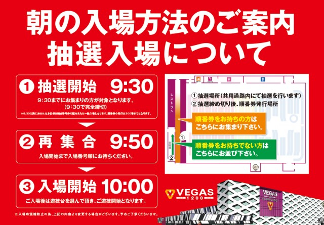 並んだ順で9:45より抽選を開始致します(詳細は最新情報へ) |