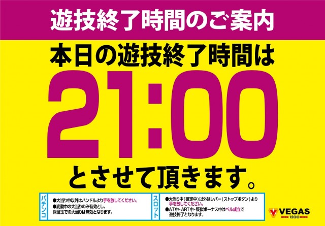 本日の営業時間は21時を持ちまして閉店とさせて頂きます。