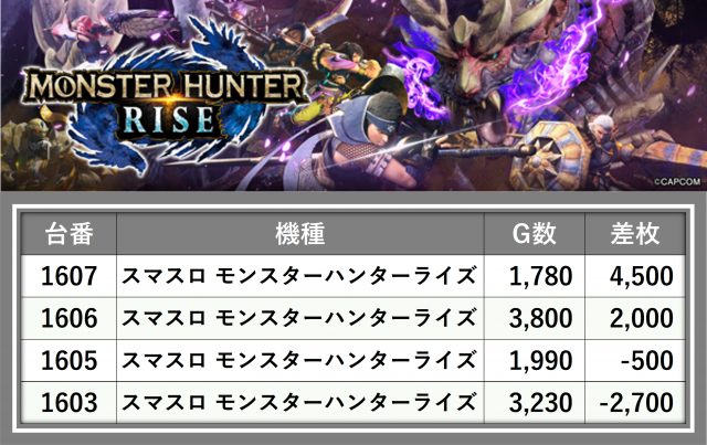 厳選された取材対象機種をはじめ、その他スロット全体から好記録が飛び出した!プレイヤーが楽しんだ1日を下記データにて振り返ってみて欲しい。
