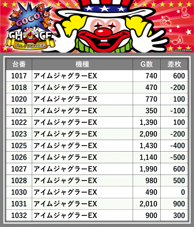 ※台番順に掲載しています