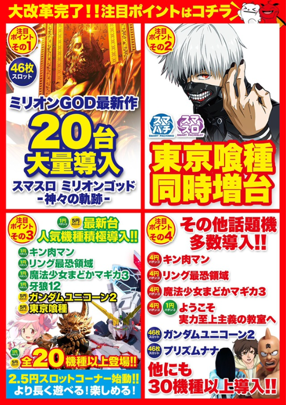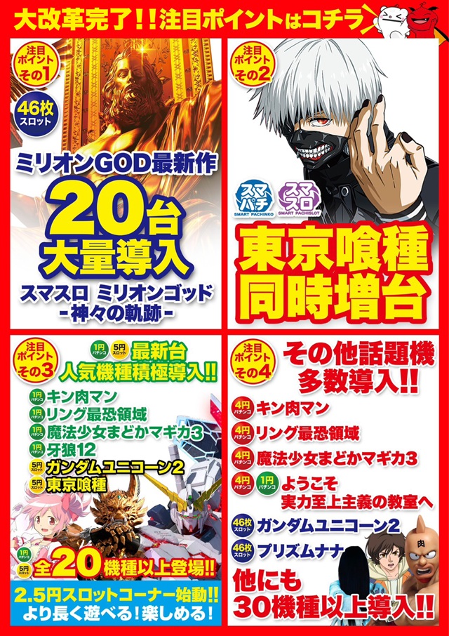 4月22日(水)2026年春の大改革第2弾!!大型新台入替!