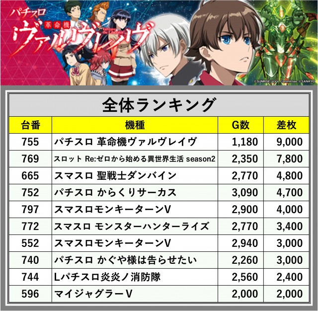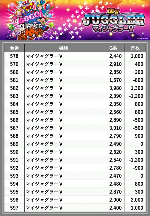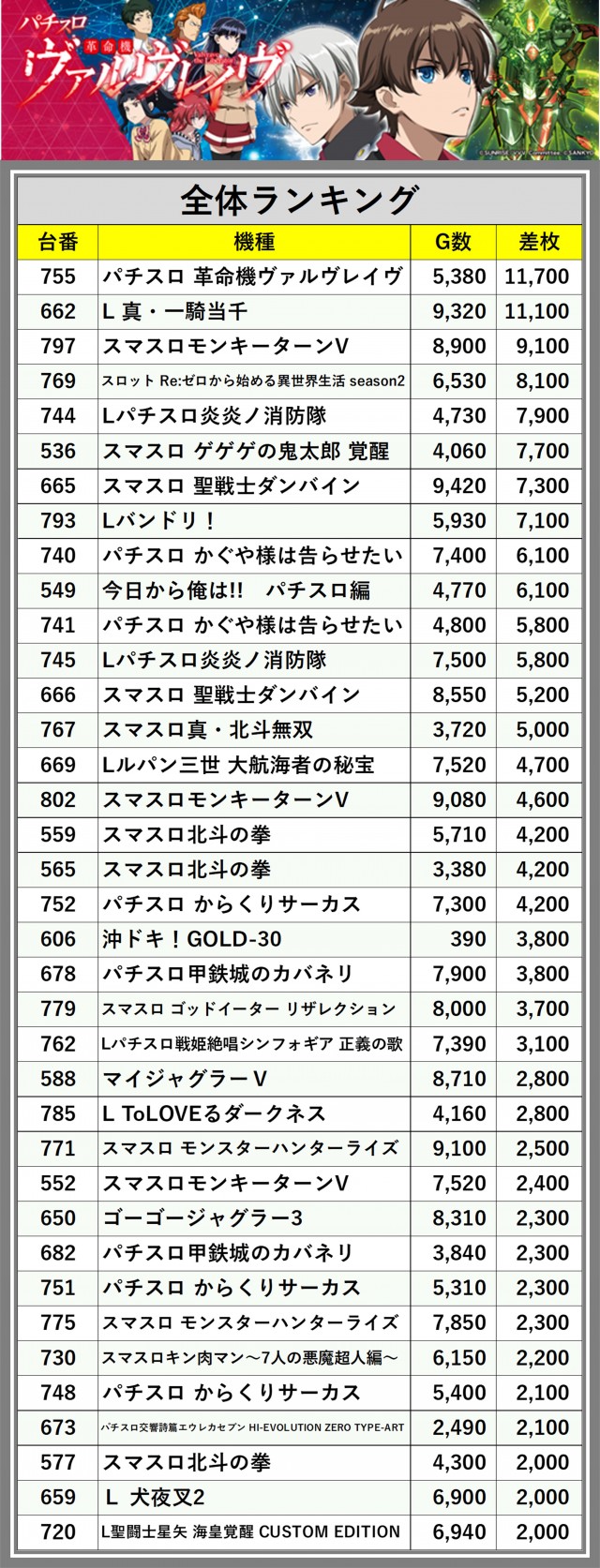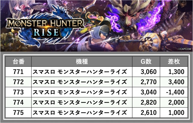 厳選された取材対象機種をはじめ、その他スロット全体から好記録が飛び出した!プレイヤーが楽しんだ1日を下記データにて振り返ってみて欲しい。