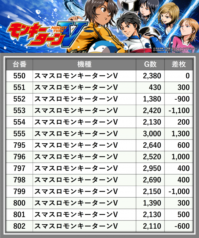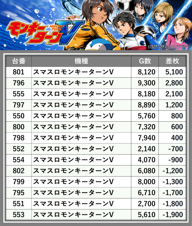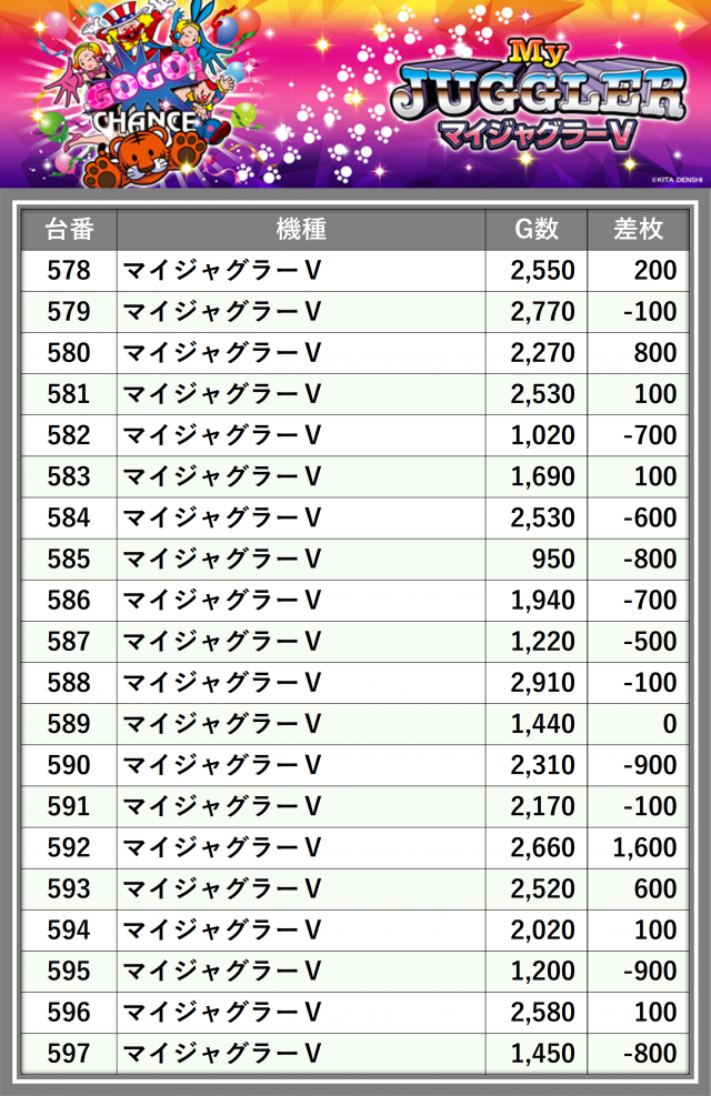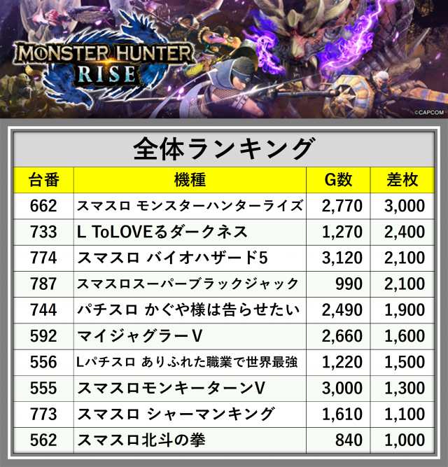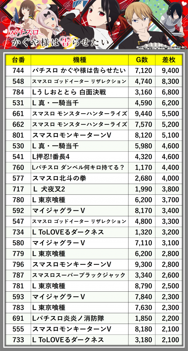 ※差枚数順に掲載しています