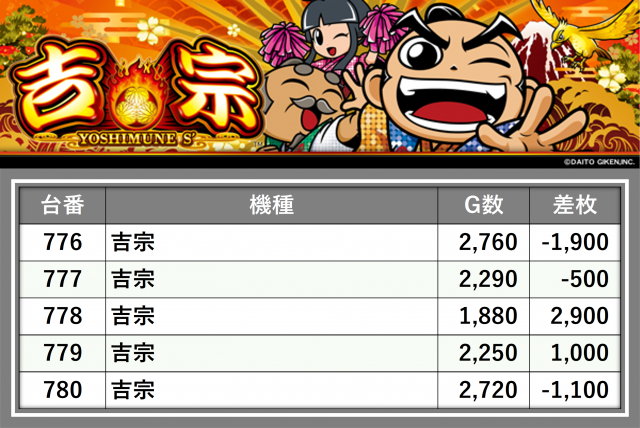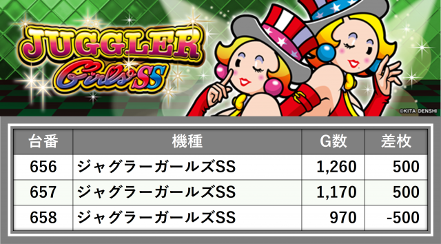 厳選された取材対象機種をはじめ、その他スロット全体から好記録が飛び出した!プレイヤーが楽しんだ1日を下記データにて振り返ってみて欲しい。