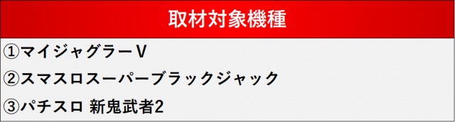厳選された取材対象機種をはじめ、その他スロット全体から好記録が飛び出した!プレイヤーが楽しんだ1日を下記データにて振り返ってみて欲しい。