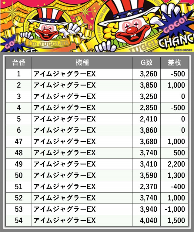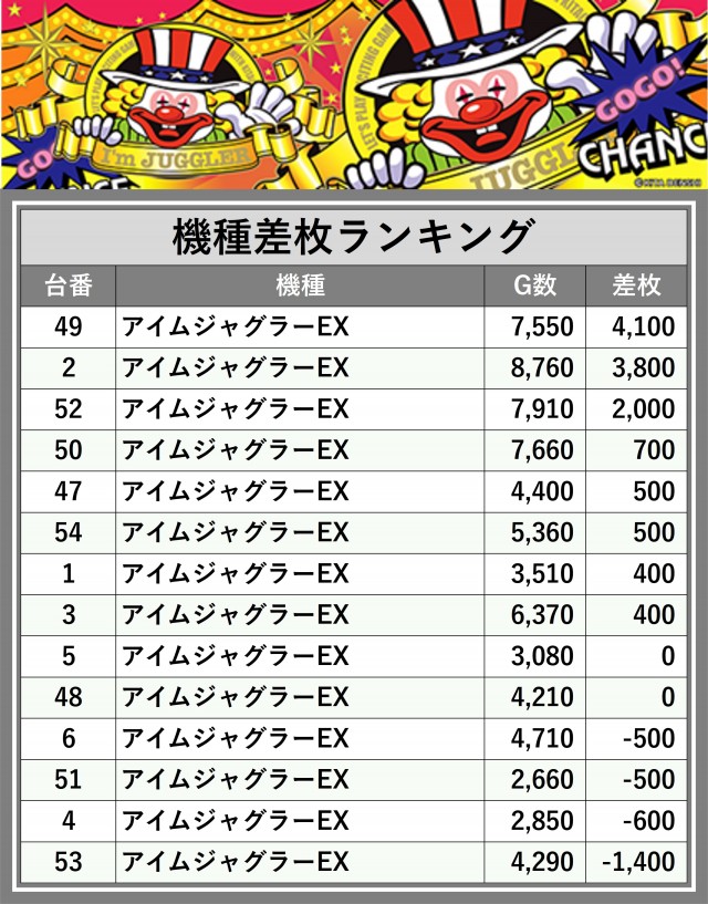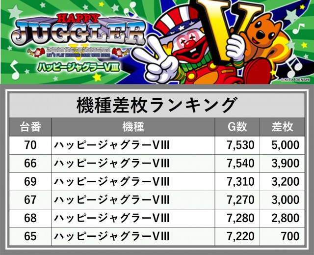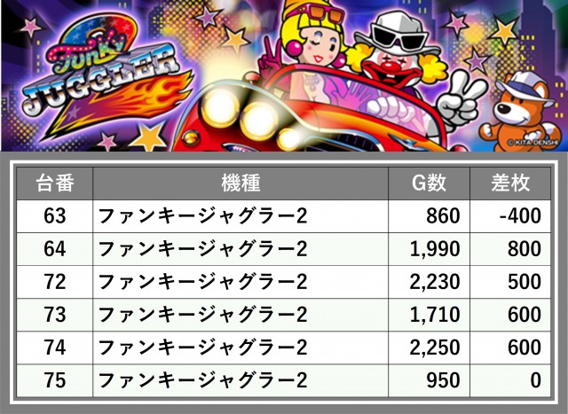 厳選された取材対象機種をはじめ、その他スロット全体から好記録が飛び出した!プレイヤーが楽しんだ1日を下記データにて振り返ってみて欲しい。