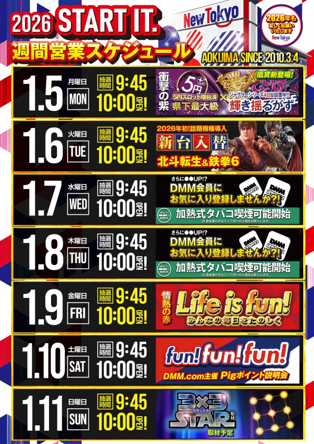 本日!2026年初の⚡新 台 入 替⚡是非お楽しみ下さい♪