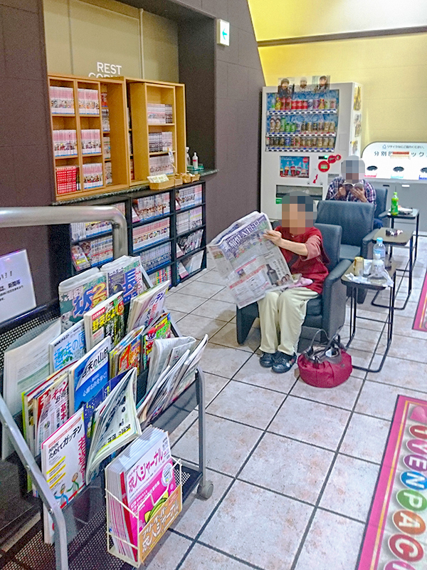 レストスペースには新聞や漫画本などが用意されており、誰もがリフレッシュできることだろう。