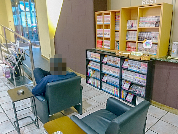 レストスペースは広々としており実に開放的。たくさんの漫画本が用意されているとあって、プレイヤーたちは十分リラックスできることだろう。