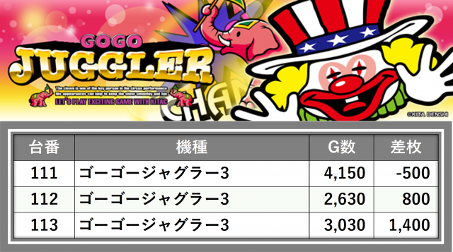 厳選された取材対象機種をはじめ、その他スロット全体から好記録が飛び出した!プレイヤーが楽しんだ1日を下記データにて振り返ってみて欲しい。