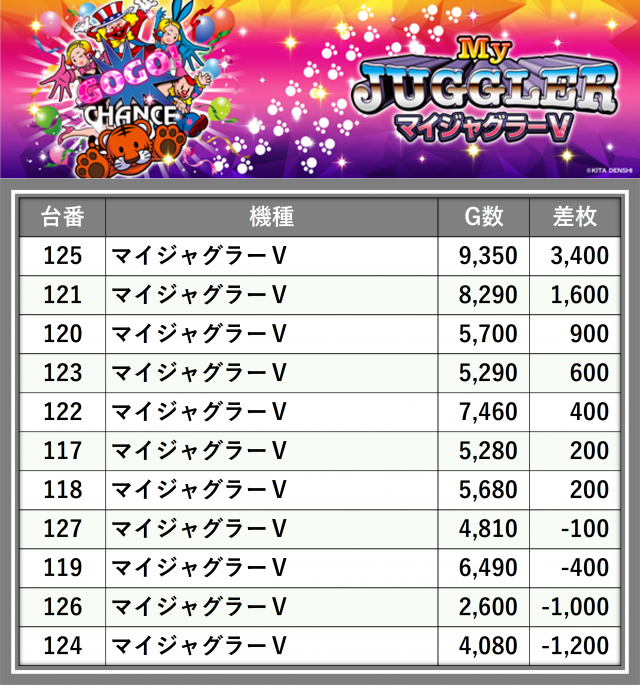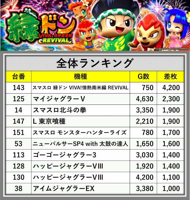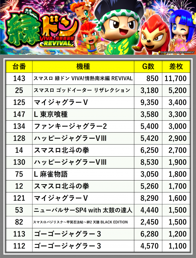 ※差枚数順に掲載しています