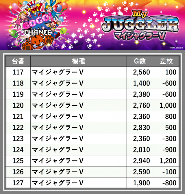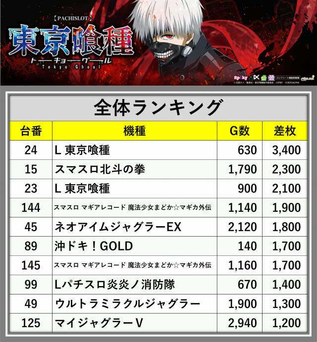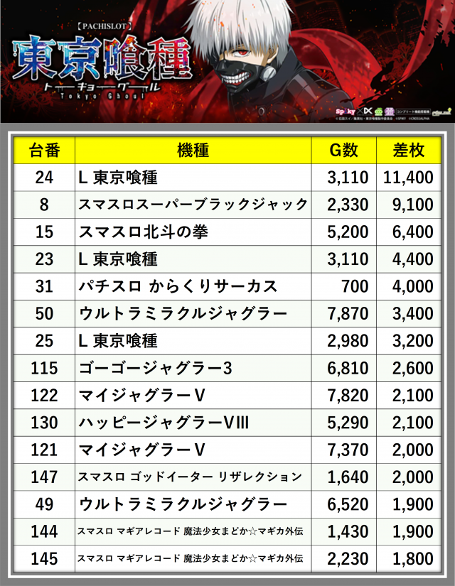 厳選された取材対象機種をはじめ、その他スロット全体から好記録が飛び出した!プレイヤーが楽しんだ1日を下記データにて振り返ってみて欲しい。