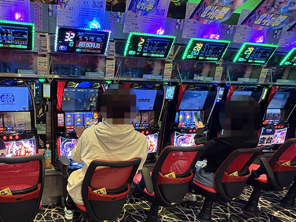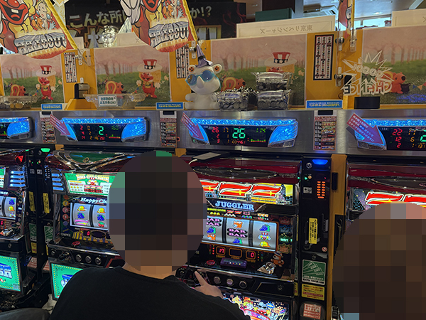 15時半ごろの1000円/46枚パチスロの様子を見ると「ファンキージャグラー2」や「マイジャグラーⅤ」が大盛り上がり。機種性能を存分に発揮するプレイヤーを目の当たりにしている。