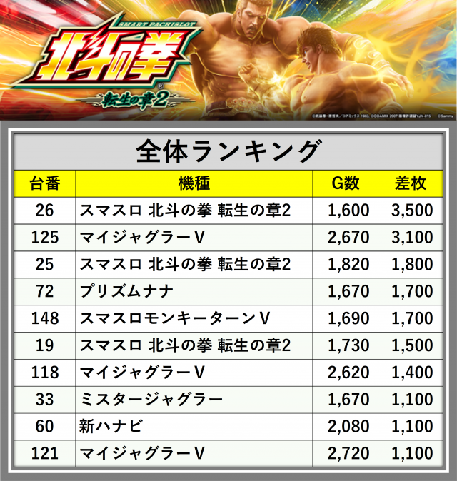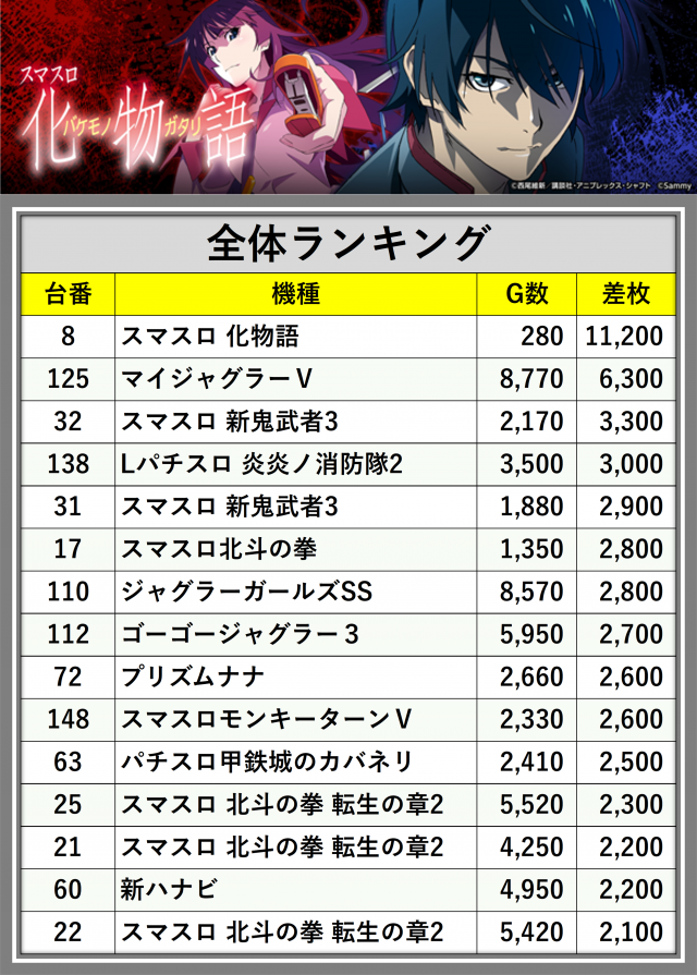 ※差枚数順に掲載しています