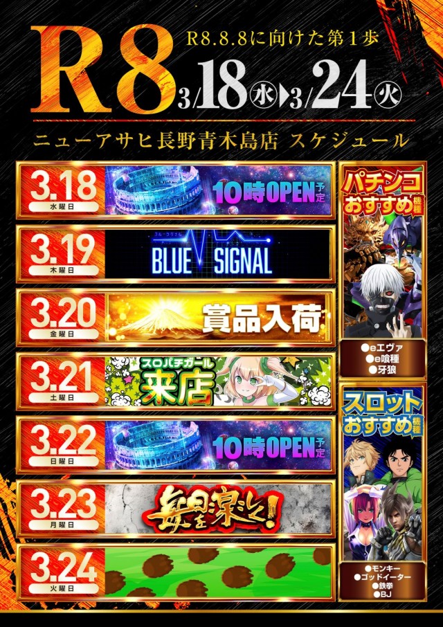 1位 3月2日(月) 2位 3月3日(火) 3位 3月22日(日)