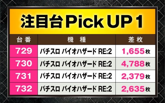 まず注目したのが全台系。『パチスロ バイオハザード RE:2』は4台全台がプラスの平均2,864枚と大盛り上がりのようだ!