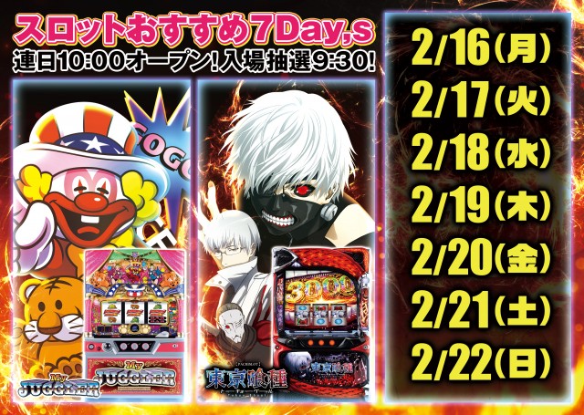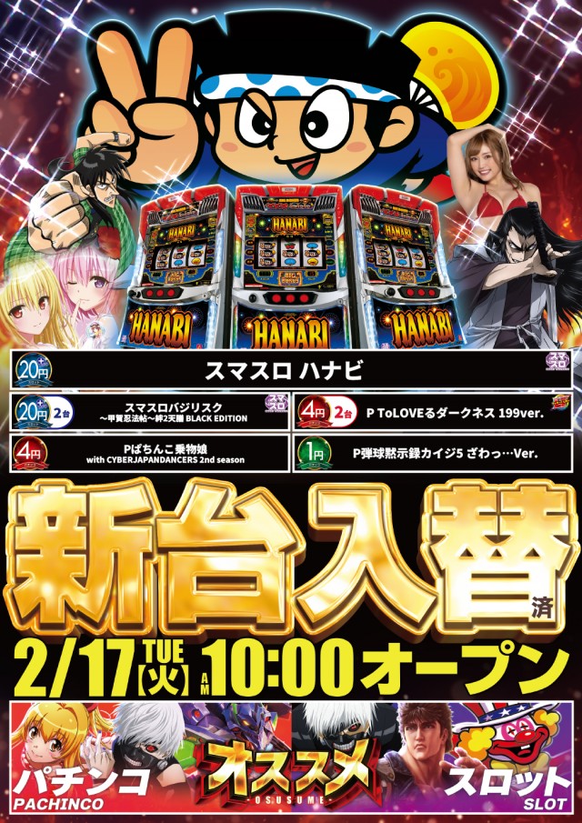 本日2/17(火)オススメ♡2日目♡&新台入替!