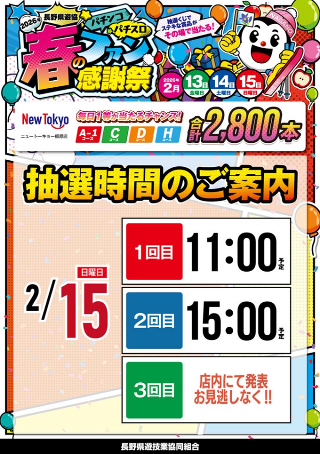 1位 1月24日(土) 2位 2月7日(土) 3位 2月15日(日)