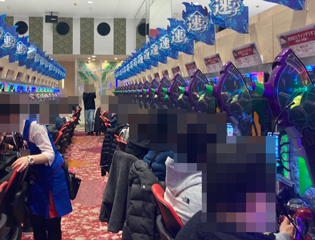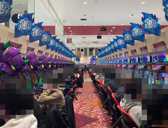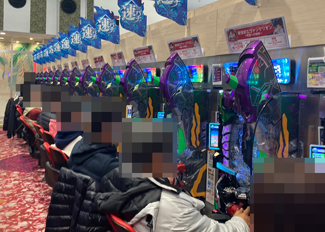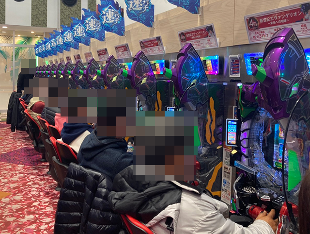 夕方頃のホール内では、パチンコのにぎわいが大きく、あちこちに活躍をしているプレイヤーの姿があった。