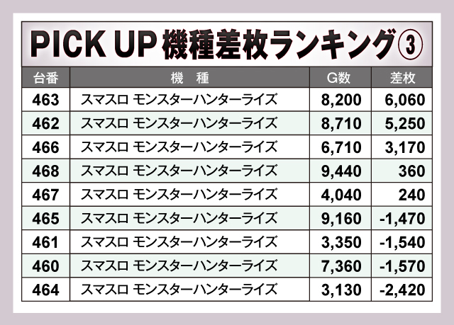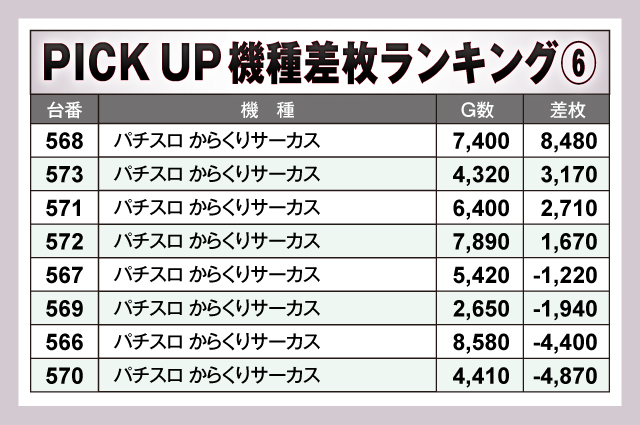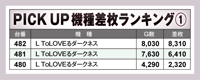 続いては、当日店内を大いに盛り上げた6機種をチェック。6機種全てから多くの良台が出現。特に「L ToLOVEるダークネス」はピックアップした3台すべてがプラス差枚で終了しており、遊技していたファンも終日笑顔だったことが想像できる。他の機種からも+4桁差枚を記録する台が多数発生しており、多くのファンが楽しめる環境が店内全体に存在していたようだ!
