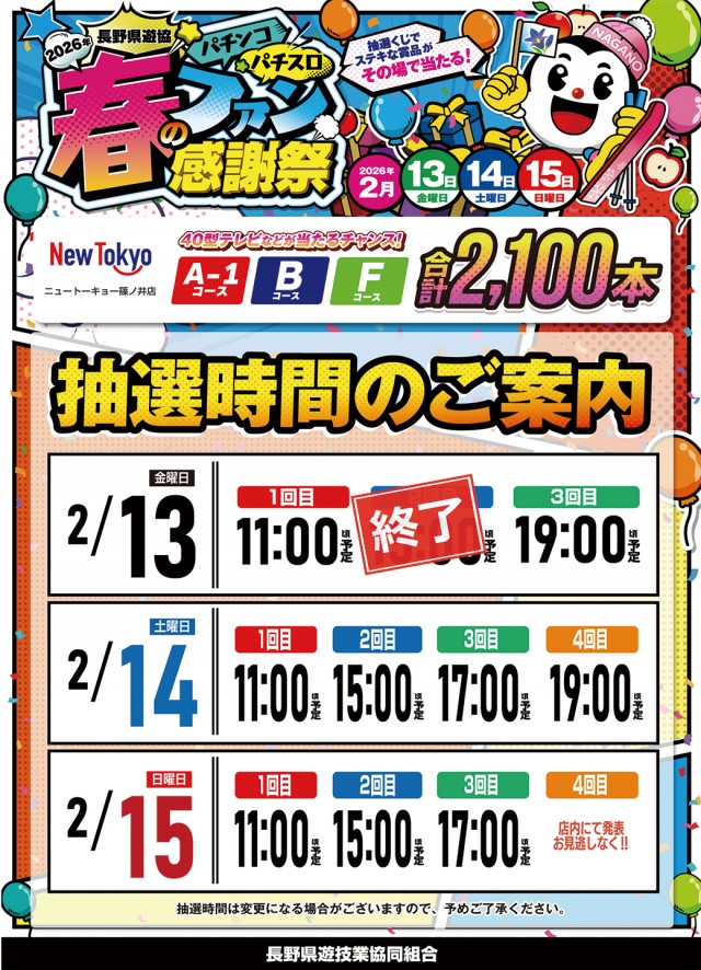 本日【春のファン感謝祭】最終日!!この後の抽選時間は・・・