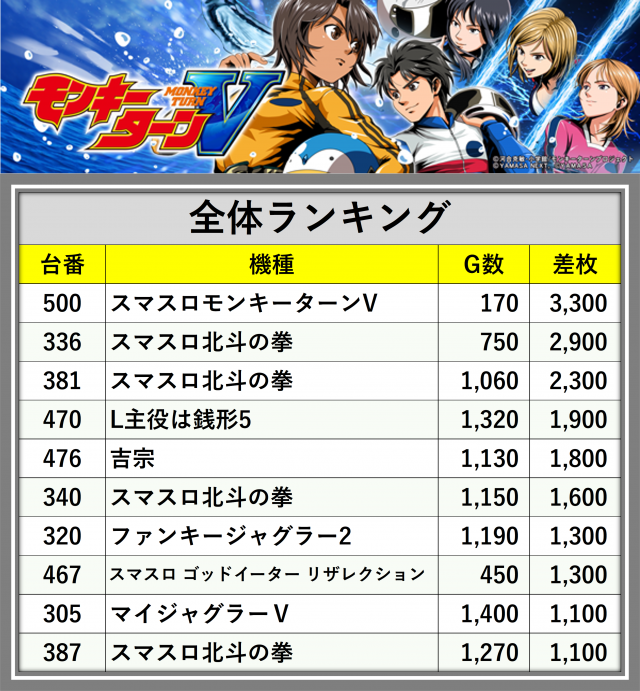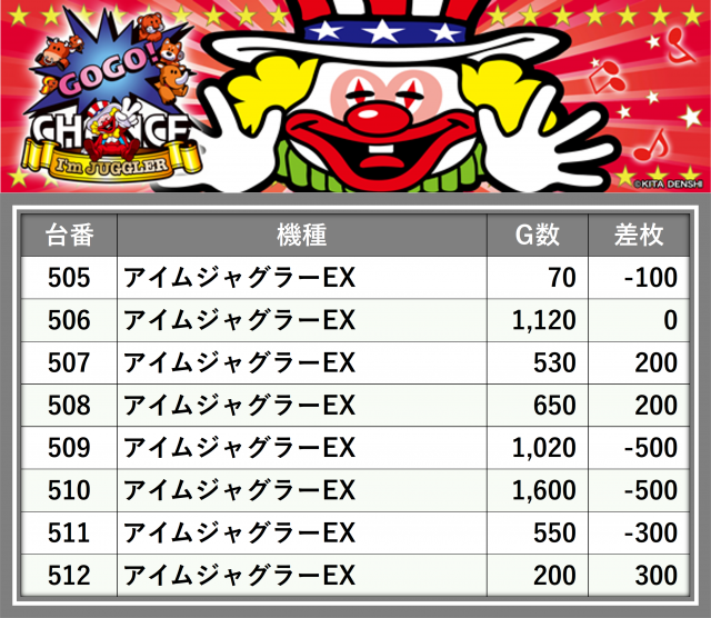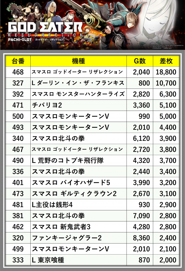 厳選された取材対象機種をはじめ、その他スロット全体から好記録が飛び出した!プレイヤーが楽しんだ1日を下記データにて振り返ってみて欲しい。