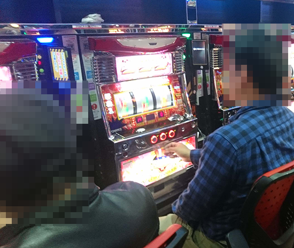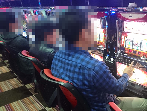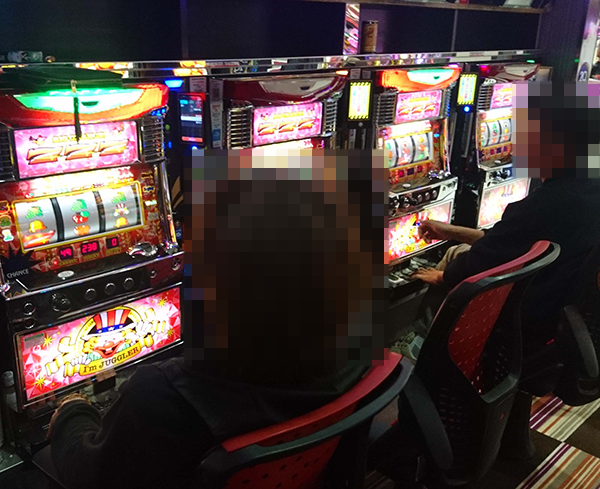 さまざまな機種が活気づいていたパチスロコーナーにおいても、「ニューアイムジャグラーEXーKT」で遊技をおこなうプレイヤーたちの笑顔がひときわ輝きを放っていた。