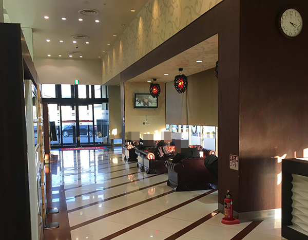メニューが豊富な食事処や座り心地のよさそうなソファを置いているレストスペースがあり、休憩をしながら長い時間でも快適に過ごせるイメージを受けた。