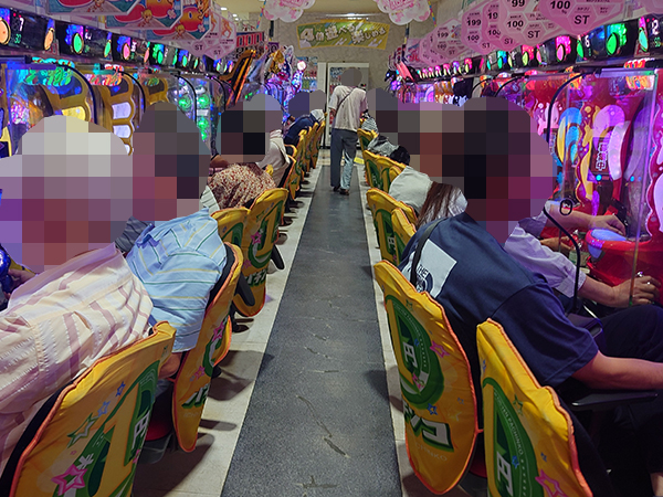 15時半ごろの1円パチンコでは、「PA大海物語4スペシャル Withアグネス・ラム」や「P大海物語4スペシャルBLACK」などから活気が感じられ、プレイヤーのイキイキとした表情が印象に残っている。