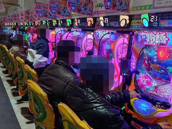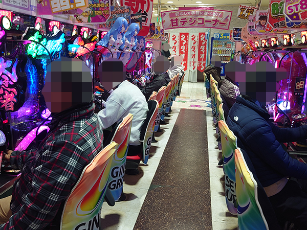 店内では貸し玉料金を問わず様々な機種で、心ゆくまで楽しむプレイヤーの姿が見られた。