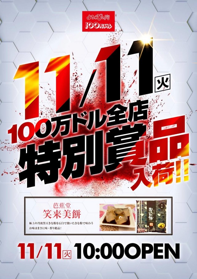 【本日11月11日】全店合同‼ 特別賞品入荷‼