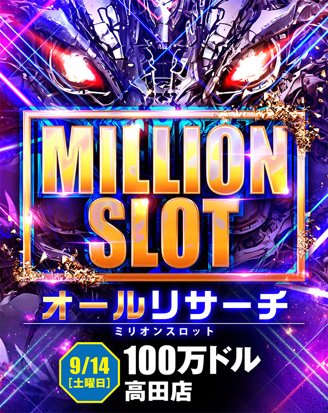 今回も10,000枚オーバー台が誕生。「ミリオンスロット」を実施する度に複数の10,000枚超えレコードが生まれるのがお約束になりつつある。今回ピックアップした3機種は、前回8月24日と同じ3機種。連続でこの3機種が活躍を見せてくれた以上、次回も大きな見せ場を作ってくれるのではないだろうか。