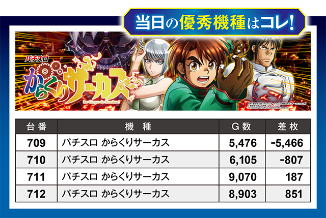 前回は12,000枚超えの大記録が生まれた『パチスロ からくりサーカス』だが、この日は振るわず…。『からくり』らしからぬ不完全燃焼な結果となってしまった。