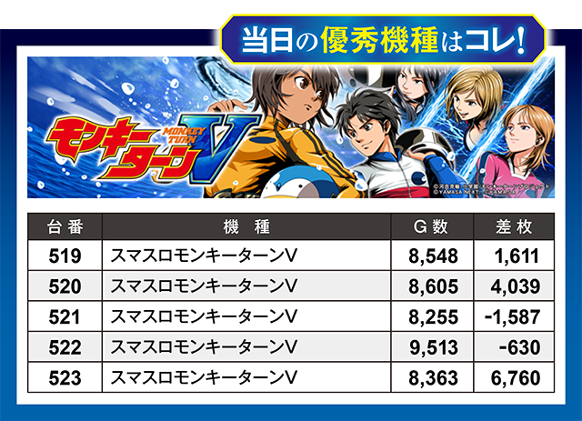 前回と同じく勝率6割、そしてこれまた前回と同じく平均2,000枚オーバーを実現!2連続でのこの結果を踏まえると、今後も『スマスロモンキーターンV』の動向にはアンテナを張っておいた方がよさそうだ。