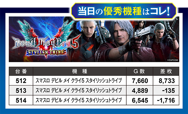 512番台だけが8,500枚オーバーという突き抜けた結果に。残りの2台との挙動を比べても、その格差は明白だった。