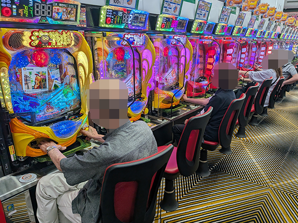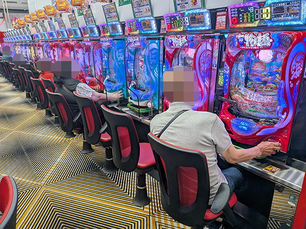 14時ごろの200玉/200円パチンコでは「PA大海物語5 Withアグネス・ラム」や、「PAスーパー海物語 IN 沖縄5 with アイマリン」などの甘海シリーズで好調なプレイヤーが多数見受けられ、時折見せる嬉しそうな表情が印象に残っている。